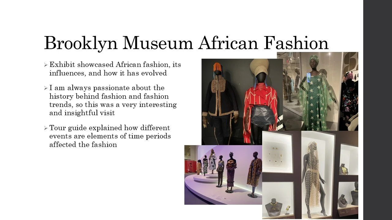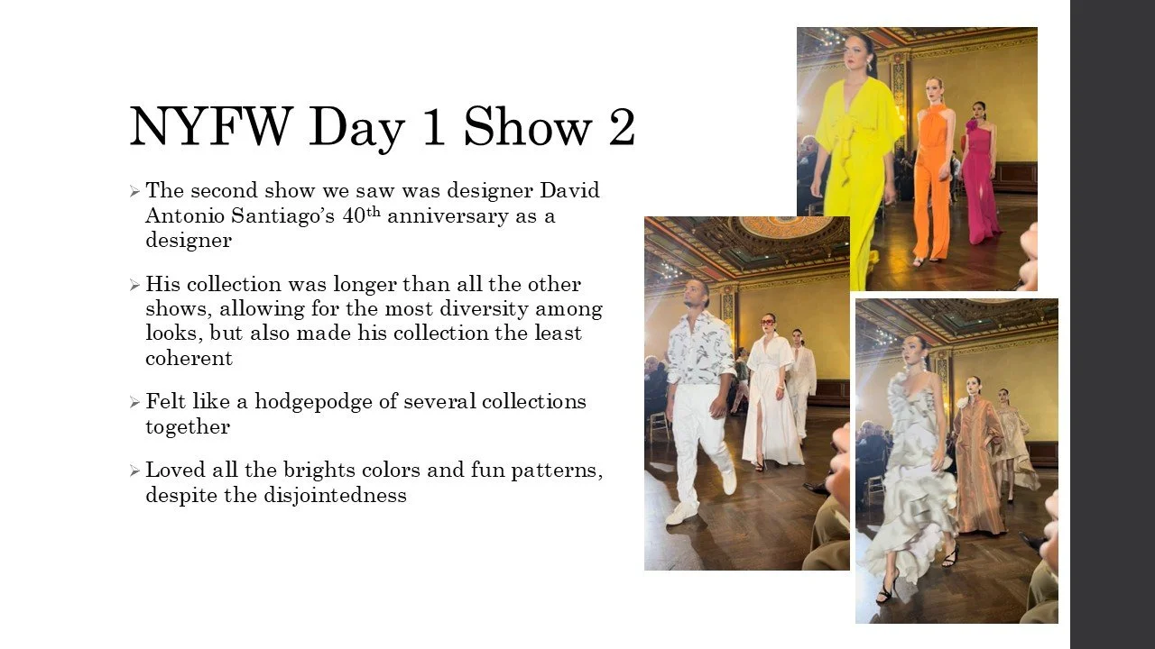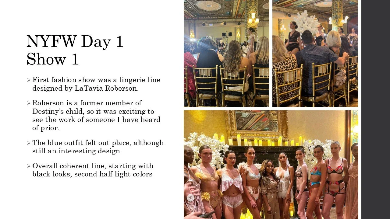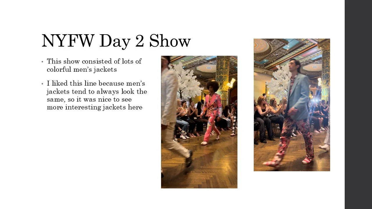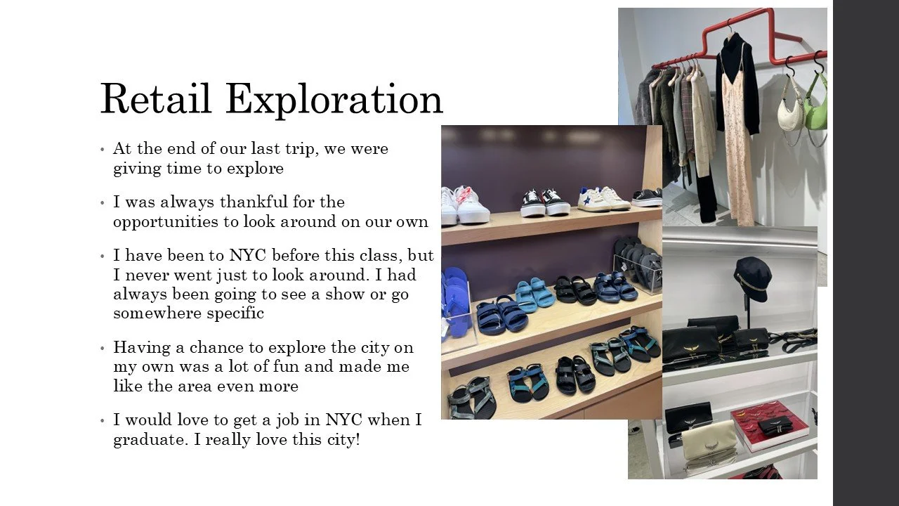 Approximately every other Friday of my fall semester, the New York Fashion Immersion class would travel to New York City for the day and visit various locations and people. We took a four day long trip during New York Fashion Week as our first trip. This Digital Journal was used to track and reflect upon each of our visits.
