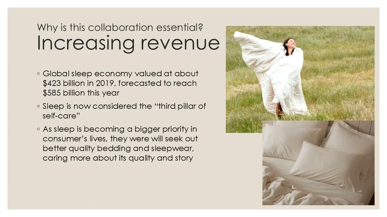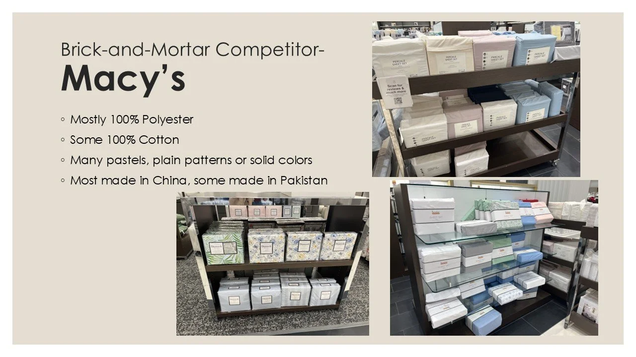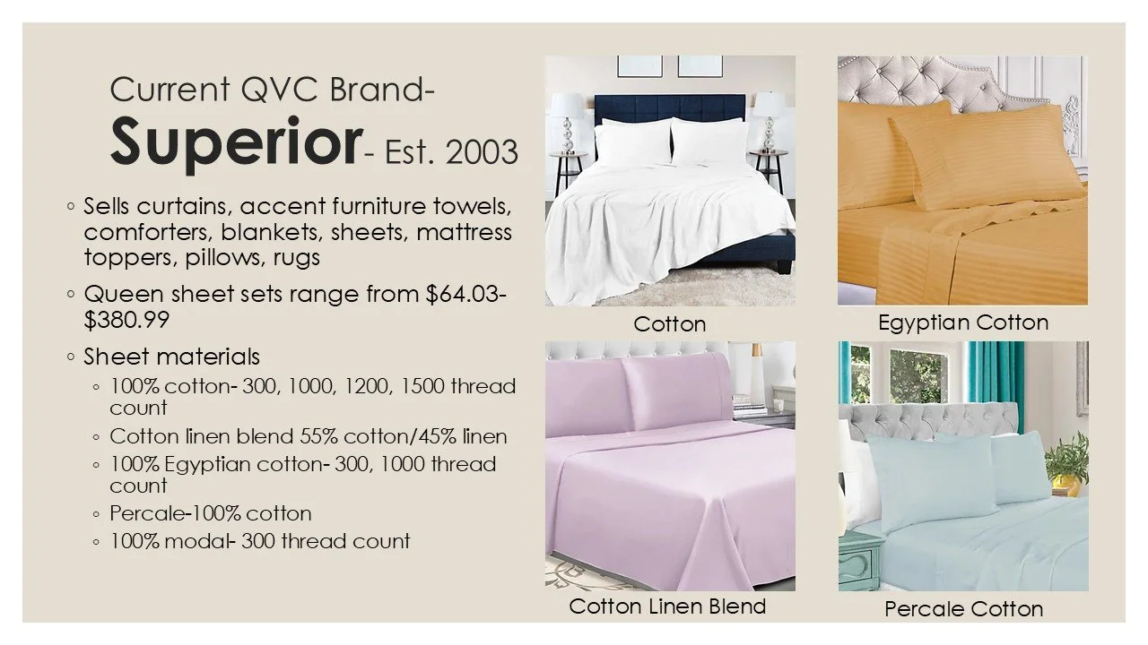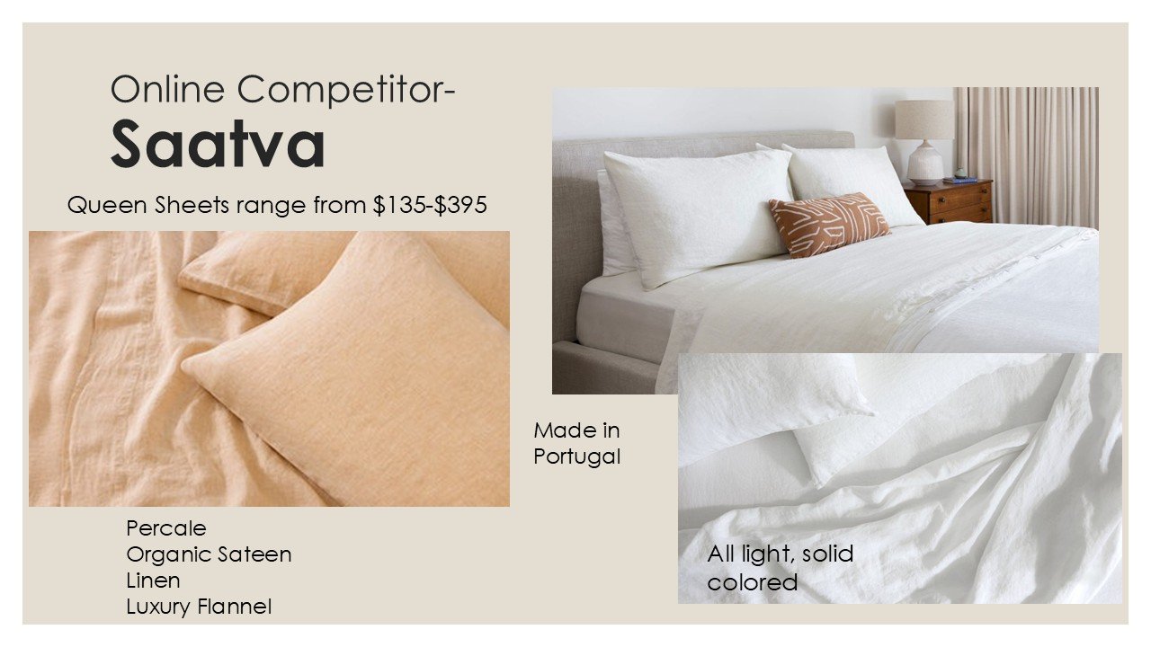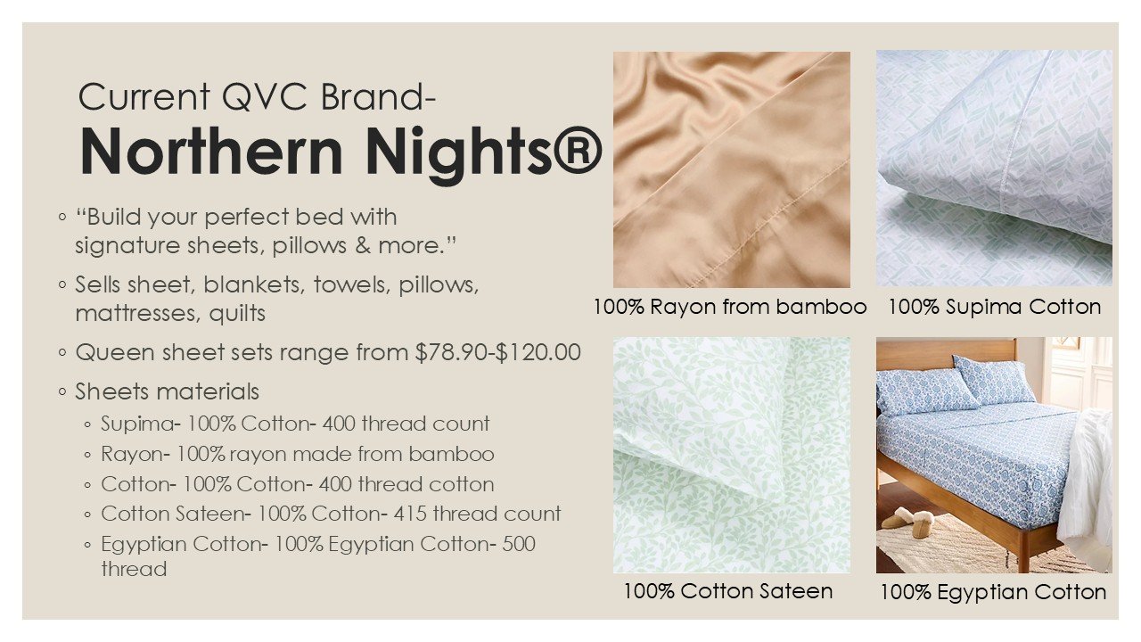 Collaboration between Coyuchi, an organic cotton bedding brand, and QVC. I created sheets designed to help people sleep and showcased how the sheets would be presented on QVC. This was the first major project in my Product Development class, the first class I took as part of my Buying and Merchandising specialization.