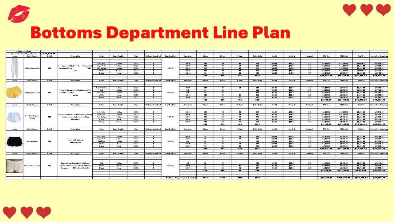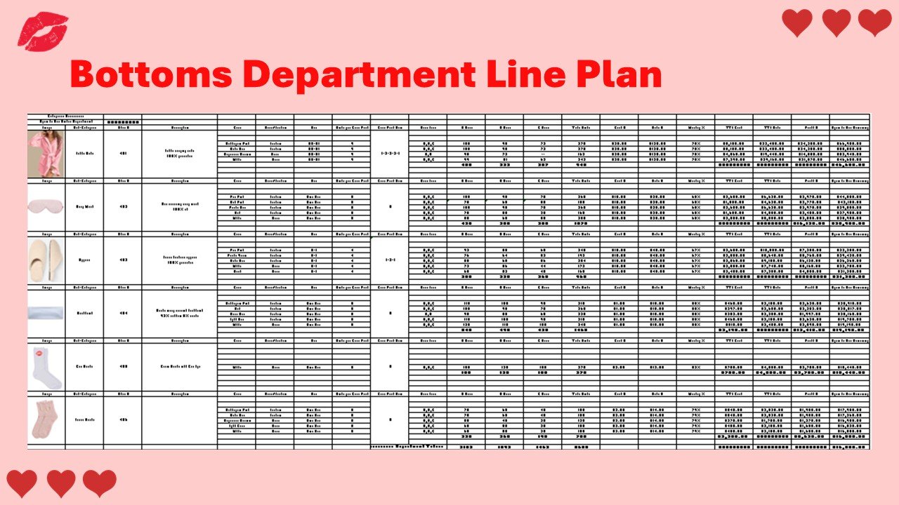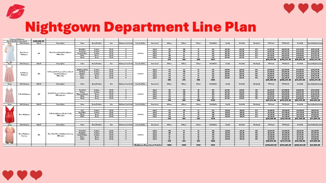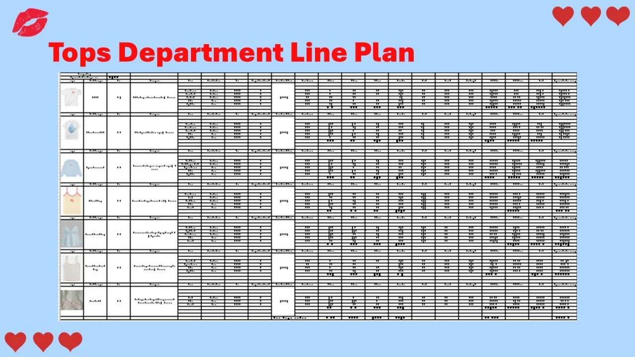 Final project in the class Buying and Merchandising, the second class I took for my specialization. We had to create a collaboration with a preexisting brand, decide on the products to be sold at 3 locations, and create an intricate line plan, and decipher where to allocate the remaining open to buy.